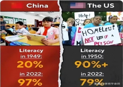当中国用70年时间将识字率从20%飙升至98%,成为全球文盲率最低的国家之一时,美国却上...