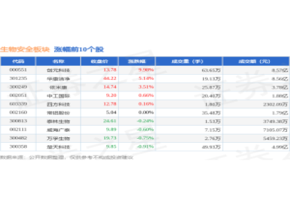 证券之星消息,12月23日生物安全板块较上一交易日下跌0.35%,再升科技领跌。当日上证...