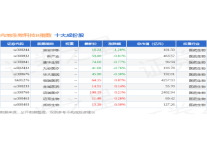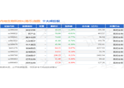 - 12月19日内地生物科技R(港币)(483102)指数涨158%成份股映恩生物- 2025-12-21