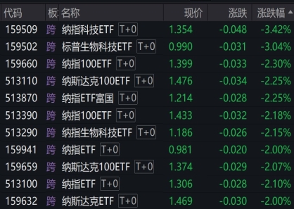美股相关ETF午后持续走低,纳指科技ETF、标普生物科技ETF跌逾3%,多只纳指100相...