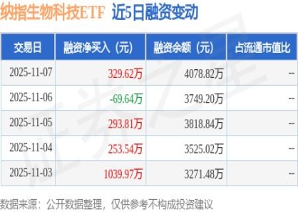 - 纳指生物科技ETF:11月7日融资买入331298万元融资融券余额407882万 2025-11-10