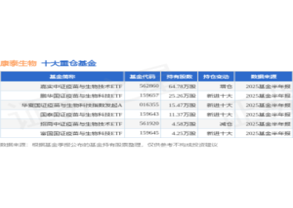 - 9月1日康泰生物涨951%嘉实中证疫苗与生物技术ETF基金重仓该股 2025-09-02