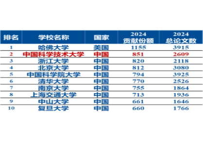 - 2025年度自然指数发布中国科大位列国内高校第一、全球高校第二 2025-08-09