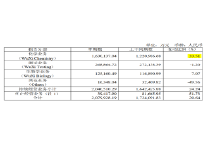 得益于核心业务稳步增长以及资产出售,药明康德(603259.米乐 登录入口SH,今年上半...