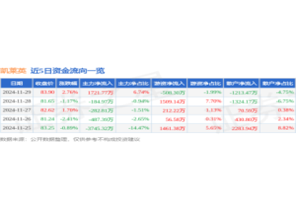 - 股票行情快报:凯莱英(002821)11月29日主力资金净买入172177万元 2024-11-30