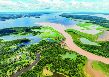 3月14日,在巴西亚马孙州首府马瑙斯附近内格罗河流域一处旅游景点,游客近距离观赏亚马孙河...