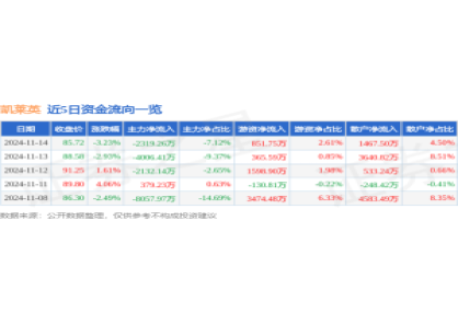 - 股票行情快报:凯莱英(002821)11月14日主力资金净卖出231926万元 2024-11-17
