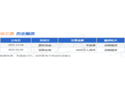 - 【投融资动态】世之源战略融资投资方为国投创益 2025-12-12