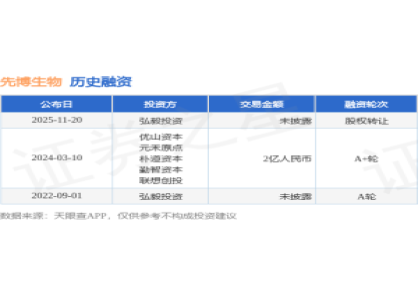 - 【投融资动态】先博生物股权转让融资 2025-11-26