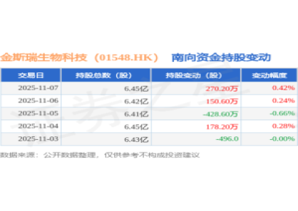 - 金斯瑞生物科技(01548HK):11月7日南向资金增持2702万股 2025-11-08