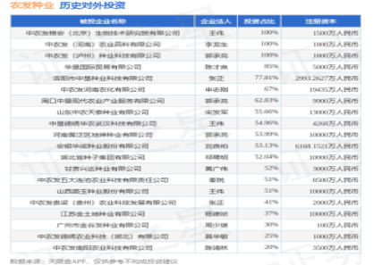 证券之星消息,根据天眼查APP显示,农发种业(600313.SH)新增一起对外投资事件,...