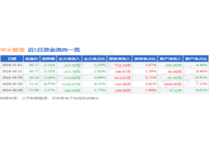 - 股票行情快报:华大智造(688114)11月1日主力资金净卖出15710万元 2024-11-03