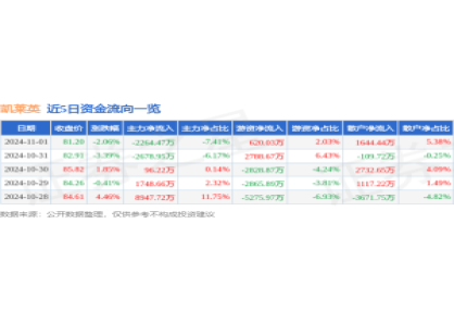 - 股票行情快报:凯莱英(002821)11月1日主力资金净卖出226447万元 2024-11-03